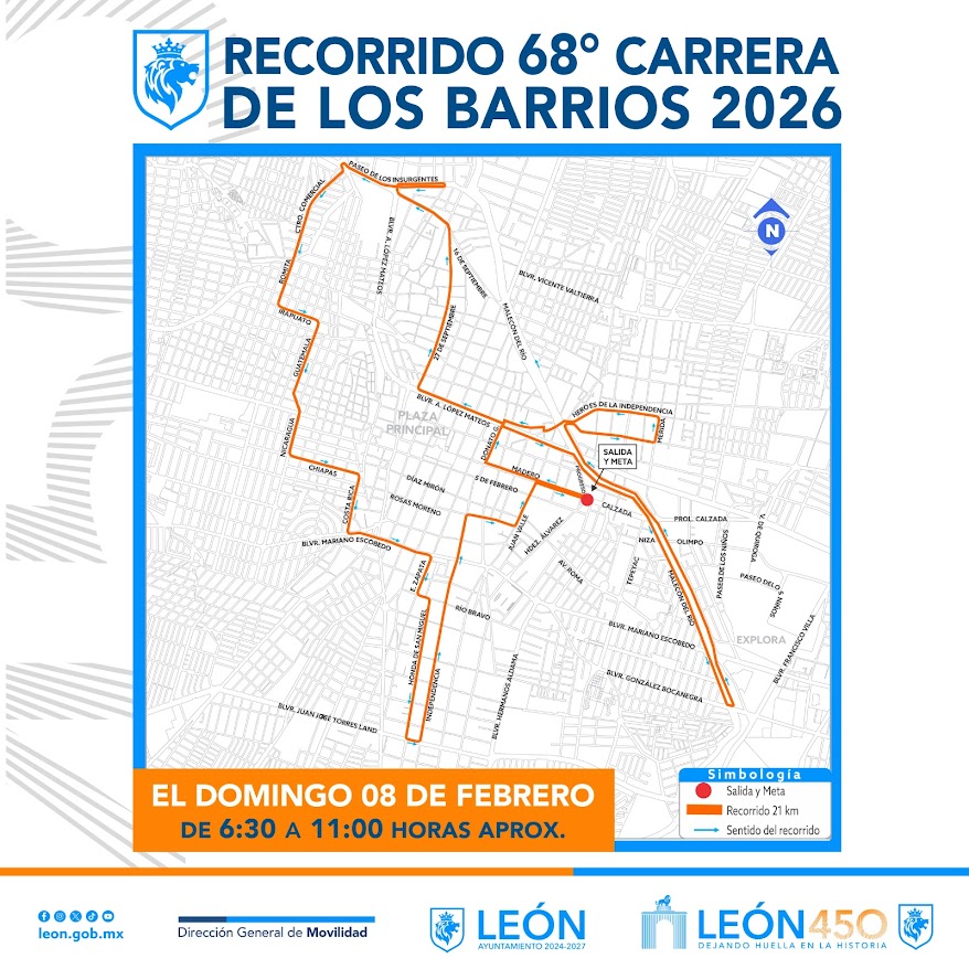 Con el objetivo de garantizar la seguridad de participantes, peatones y automovilistas, el Gobierno Municipal de León implementará cierres viales…